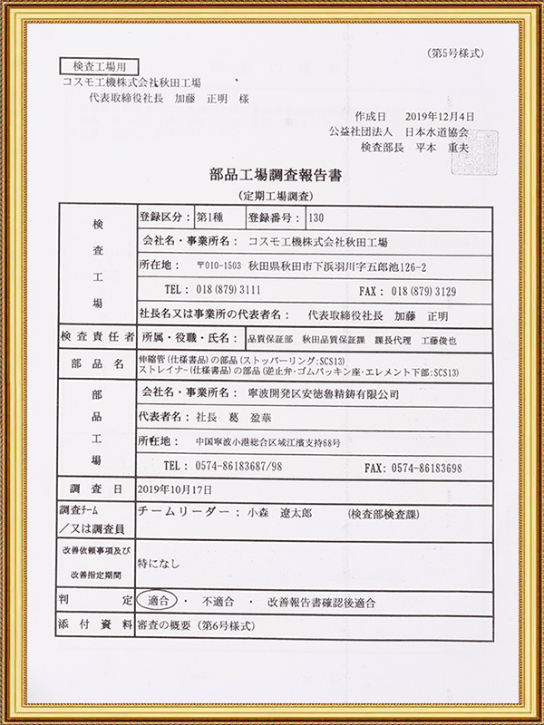 Ningbo Etdz Andrew Precision Cast Co., Ltd. is a joint venture créée fin 1997. L'entreprise est située dans la ville de Xiaogang, à 20 kilomètres au nord-est de Ningbo. Ville. Il se trouve à seulement 15 kilomètres du port de Beilun, le plus grand port de fret international du pays, avec un transport pratique et un bon environnement. L'entreprise dispose d'une technologie et d'un capital solides et avancés, et introduit constamment de nouveaux produits. L’entreprise est en plein essor à un rythme étonnant. L'entreprise a près de 120 salariés, dont 15 ingénieurs et techniciens. L'entreprise cultive, introduit, et en réservant un groupe de professionnels de haute technologie, et désormais l'entreprise est considérée comme une entreprise de haute technologie. Le directeur général est spécialement nommé en tant qu'expert provincial en technologie de moulage et directeur exécutif de la China Precision Casting Association. Il dirige un groupe d'équipes de haute technologie et de haute qualité se bat depuis longtemps dans l’industrie du moulage de précision en acier inoxydable. Ils progressent constamment et innovants, et affichent un nouveau look. Devenez à l’avant-garde de l’industrie avancée du moulage de précision dans le pays et dans le monde. L'entreprise est spécialisée dans la production de diverses vannes, pompes, matériel marin, pièces automobiles, pièces de train, pièces de tuyaux et autres produits de moulage de précision en acier inoxydable, avec une production mensuelle de plus de 200 tonnes. Plus de 90 % des produits de l'entreprise sont exportés aux États-Unis États, Allemagne, Japon, Italie, Russie, Espagne et autres pays et régions. L'entreprise s'appuie sur des technologie avancée et méthodes de gestion scientifique pour produire des produits en acier inoxydable de haute qualité qui répondre aux besoins des différents clients. Et promet aux clients : « Soutenu par une technologie de première classe et pionnier en dirigeant le développement de nouveaux produits, nous deviendrons l'entreprise la plus rassurante et la plus satisfaite pour nos clients. Ningbo Andrew accueille les nouveaux et anciens clients pour coopérer, et nous vous servirons de tout cœur.